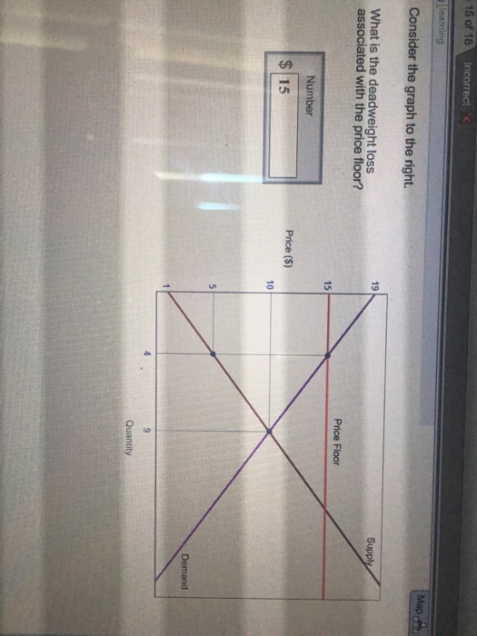 Is the deadweight loss associated with the price floor. 19- Supply Price floor 15- 24 10 Incorrect 10- Demand Quantity Price Consider the graph. Deadweight loss can be stated as the loss of total welfare or the social surplus due to reasons like taxes or subsidies causing pri. Q2 is the quantity of good at equilibrium.